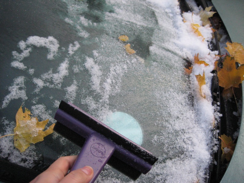 就是立刻開車 把暖器開到最熱最大 再噴de-icer 然後用claw blade掃掉容掉的雪