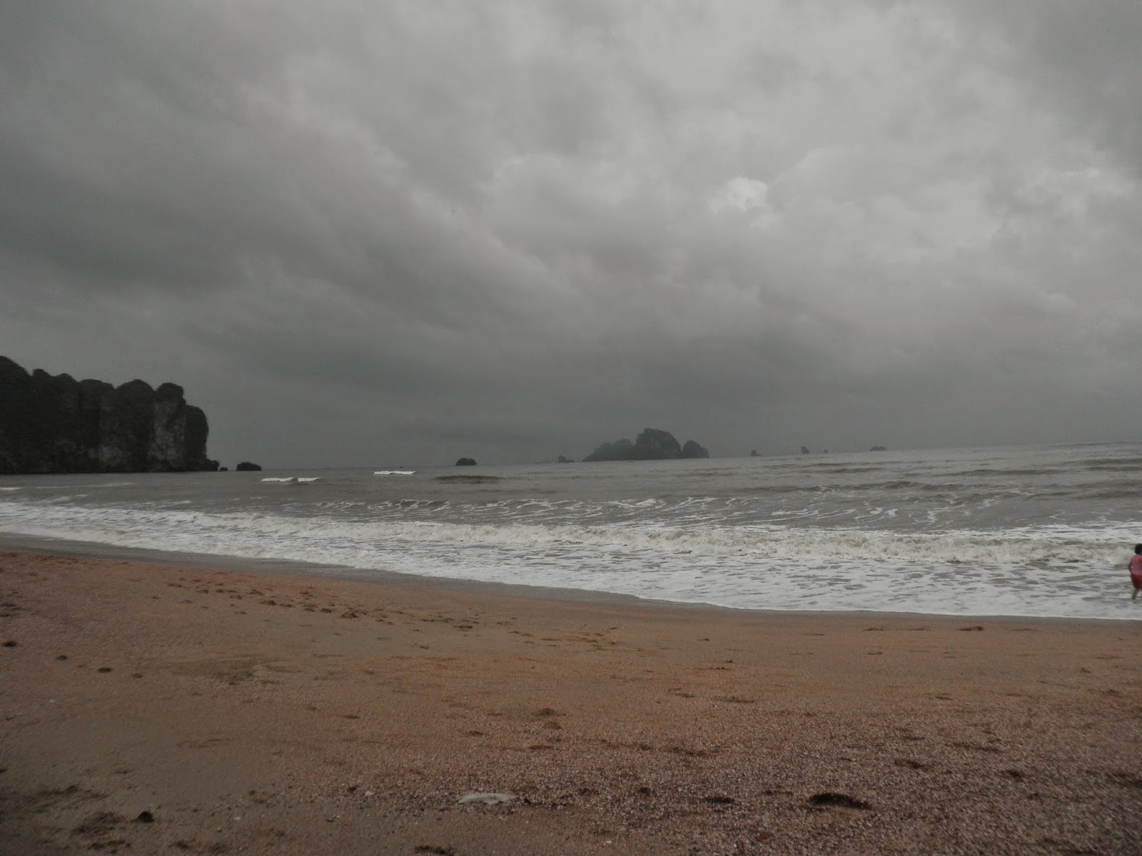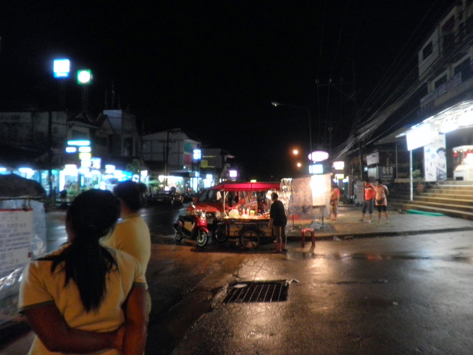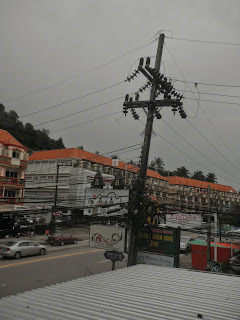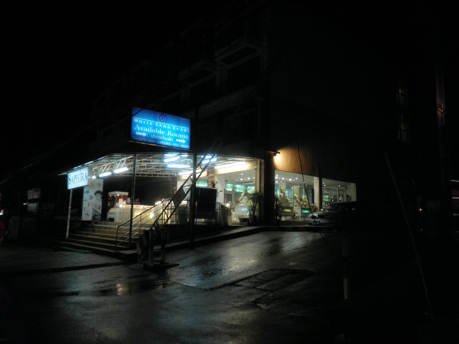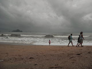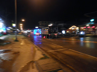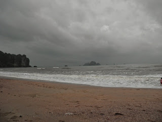 走着走着,在快要到旅店时,竟然下起了倾盆大雨。明明从机场出来时还很大太阳的。司机告诉我们krabi的雨季都是这样的,常在下午有雷阵雨,而且下得还很大呢~