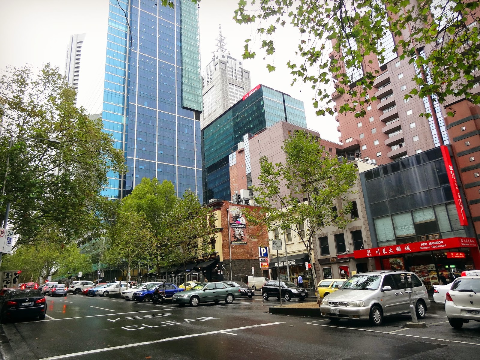 看看手表,时间已经差不多了,我们稍微整顿一下后便走到对面街的 Rydges Melbourne Hotel 等待一日游公司的接驳车。趁着旅游车还没到,我静下心来稍稍打量这一个城市。细雨后的 Exhibition St 显得格外清新,路上的车和行人都不多。秋天的天气正凉,对我们这些从赤道来的朋友来说,无论是没有一丝污染的空气,还是穿着厚毛衣在十几度的街道穿梭,都是很新鲜的体验。