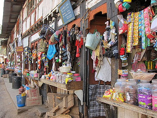 我们一路走着, 沿路有好几间General Shops, 都是卖小食零食之类的, 又见到卖家具用品的小店, 所有的店铺的招牌都是蓝色底白色字, 就只有Food Corporation of Bhutan和Bhutan Telecomh特准可以用绿色底白色字.