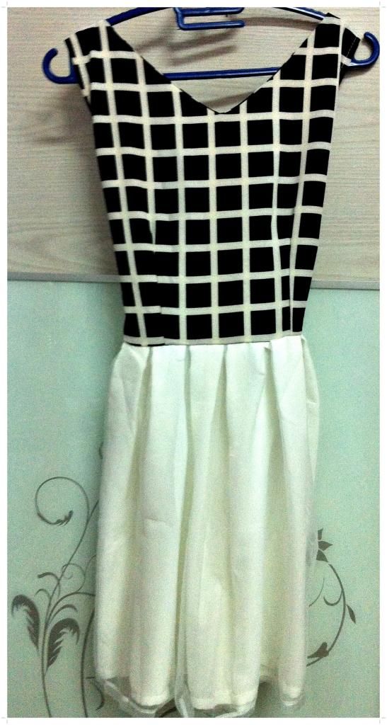 003 时尚黑白格子连身裙 (全新)RM15 产品描述:原价RM35 , 适合m size , 棉衣+白纱布料