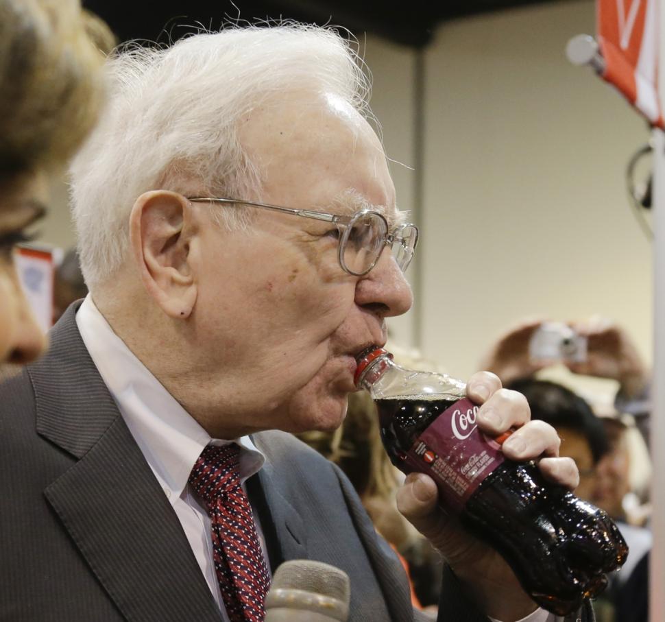 巴菲特在接受《财富》采访时表示:“如果我每天需要摄入2700卡热量,那么1/4的热量来自于可口可乐。我每天至少要喝掉5瓶12盎司(约合340毫升)的可乐。”据了解,巴菲特白天会喝3瓶可乐,晚上会再喝2瓶。