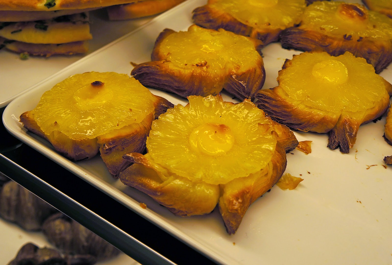 看过了面包和蛋糕,现在看看这发着金黄色光芒的烧饼蛋挞柜。我就像个小孩子发现宝藏般啊。