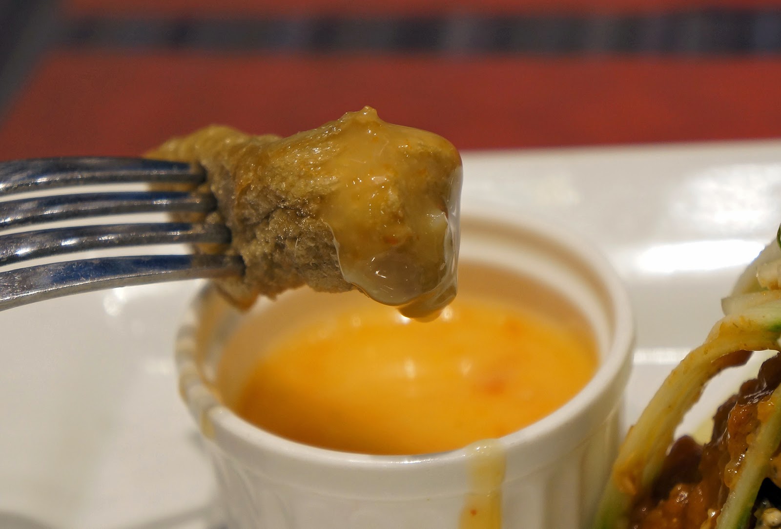 沙爹可以说是其中一样我很爱的本地食物,主要不是因为烧得香香的肉串,而是因为我实在很喜欢沙爹酱的味道。那天在iOi City Mall闲逛时突然很想吃沙爹酱,机缘巧合之下走进了这家名字很好听的餐厅Relish。