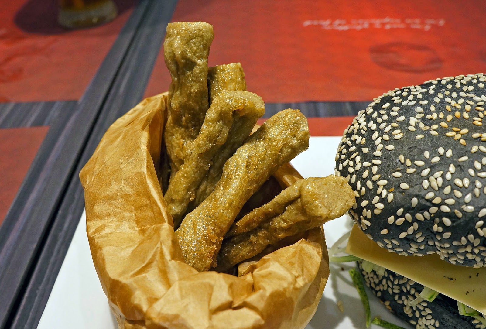 首先吸引我的就是这袋Keropok,这可是我小时候最爱吃的小吃之一呢,以这种传统食物取代西方薯条让整个概念更完整,好喜欢他们把Keropok装载牛皮纸袋里的感觉。