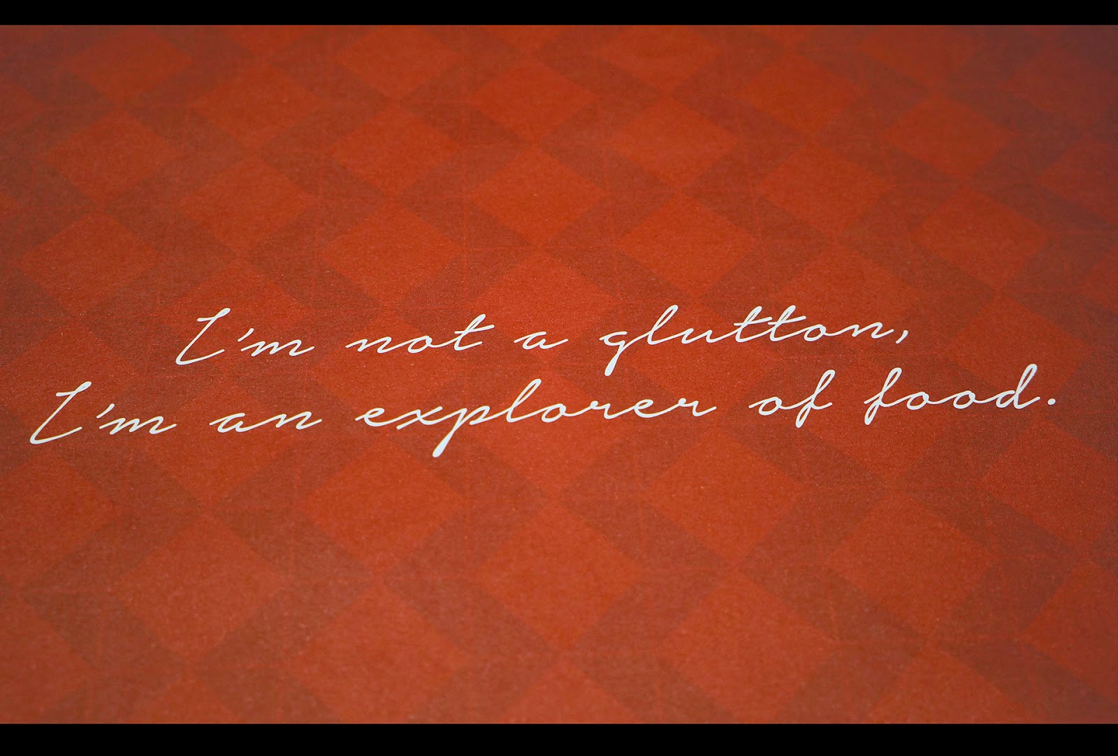 最后,我非常喜欢这句印在店内铺桌子的纸上的话。I'm not a glutton, I'm an explorer of food.