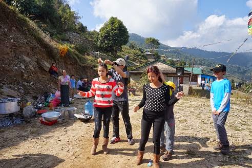 過後, 詢問了我的GUIDE,才了解到, 前陣子尼泊爾有個大節日, 他們這些舞蹈者會去跳舞表演, 然後賺一些錢. 節日過後, 他們把賺到的錢拿來辦野餐及跳舞! (我們還蠻幸運的少少參與其中) 接著他們拿了一些燒雞肉和飲料給我們吃, 禮儀上我們要去給跳舞者的頭髮夾些錢當回禮!