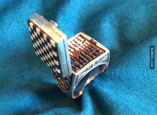 ▼2. 全世界最小的西洋棋组,装在一枚戒指上面。