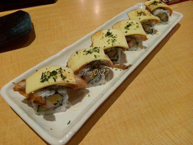 我们也点了母亲大人受吸引的 Unagi Summer Roll。烤过的鳗鱼片配上芝士和饭卷,味道不俗。这样的搭配很合适,芝士丰富了整道 maki 的味道。