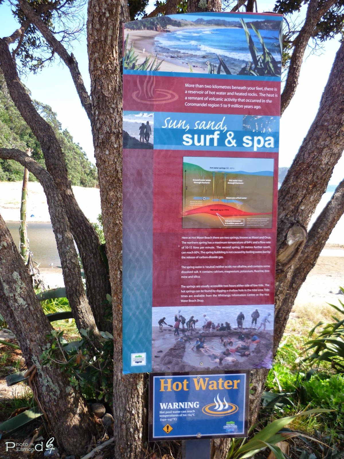 在Hot Water Beach的地底可是有一个只距离地面2公里的热石层,温度高达摄氏170度。由于这热石层蛮靠近地面,这就形成了独特的热水温泉。在低潮的前后两小时,只要在对的地点挖一个大洞就可以享受免费的热水温泉哦!对,看起来蛮简单吧。。。但实际的经验告诉我,没那么简单。。。真的,并没想象中那么简单。。。