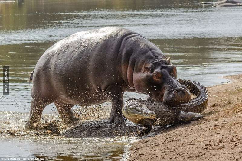 鳄鱼捕杀小河马,河马妈妈为子报仇狠斗鳄鱼。