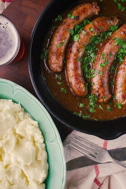 英国人称呼香肠为 Bangers,是因为二次大战时物资短缺,没有足够的动物肉及油脂制作香肠,于是兑了比较多水进去,导致煎炸香肠时容易产生油爆,发出哔哔波波的声响,英文用 Bang 来形容这种声音,遂把香肠叫做 Bangers。通常会搭配马铃薯泥和浓郁的肉汁一同食用。