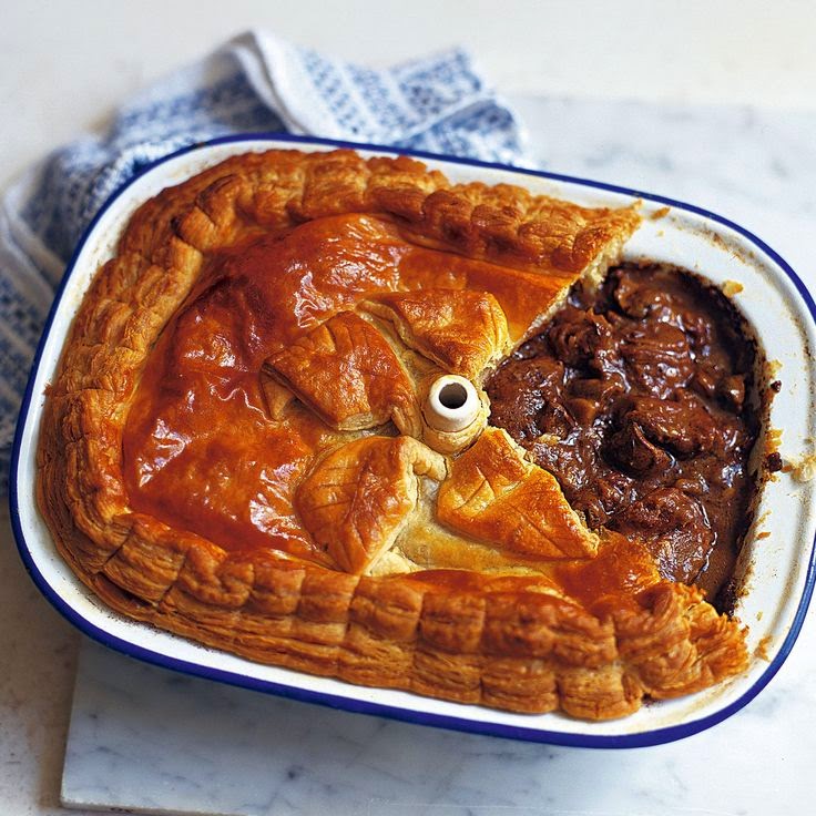 英国传统家常菜,混合牛肉块和剁成泥的牛肾,先以洋葱炒过后以酥皮包裹入烤箱烘烤,但必须趁热品尝,以免内脏凉了容易有腥味。