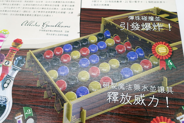 巫術學院是一款只要擺出來,即使不喜歡桌遊,或是沒聽過桌遊的人,都會為它停下腳步的遊戲,顏色超繽紛的設計,還有超級吸睛的80顆彈珠與彈珠櫃,64罐超美的魔藥,一定是不管大人小孩都人見人愛的,更厲害的是,它不只是好看而已,它還讓我們可以在真實世界中,體驗如電玩裡寶石消除的樂趣,簡單易上手的規則也相當的親民,相信能夠成為新一代的桌遊新手推坑神器!遊戲中你可以調製魔藥,或許過程中可能會有些小爆炸,不過不影響你成為一個魔藥大師,對了,就算你調出了一瓶[超黏護唇膏]你還是可以義無反顧地把它喝下去,因為它或許會為你帶來很大的幫助喔!