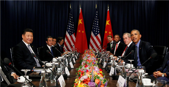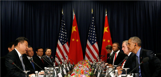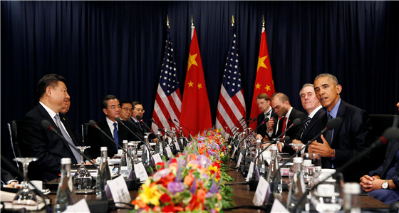 奥巴马和习近平推动巴黎气候改变协议,以对抗全球暖化。奥巴马称这是两国合作的典范。
