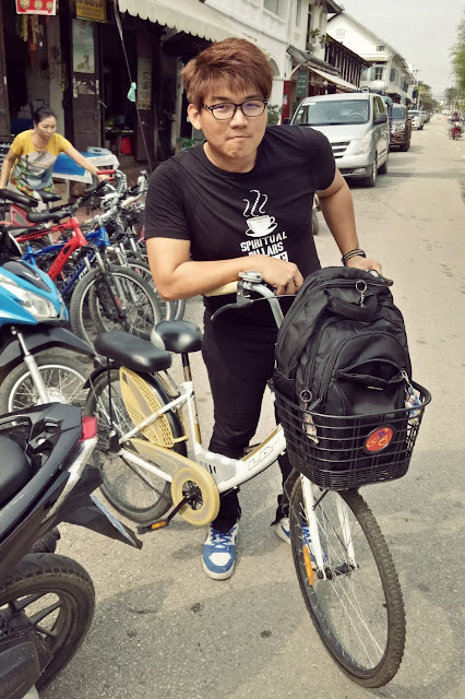 用完了早餐之后,就开启第二天的行程了,我们先到附近的商店去找寻哪里可以租借单车,我们打算来一个骑单车游旧城。好不容易就找到了一家单车出租店,一辆普通的 city bike 要价 20,000 KIP,两辆单车就40,000 KIP(大约是 RM21),租借时间是到晚上9pm。