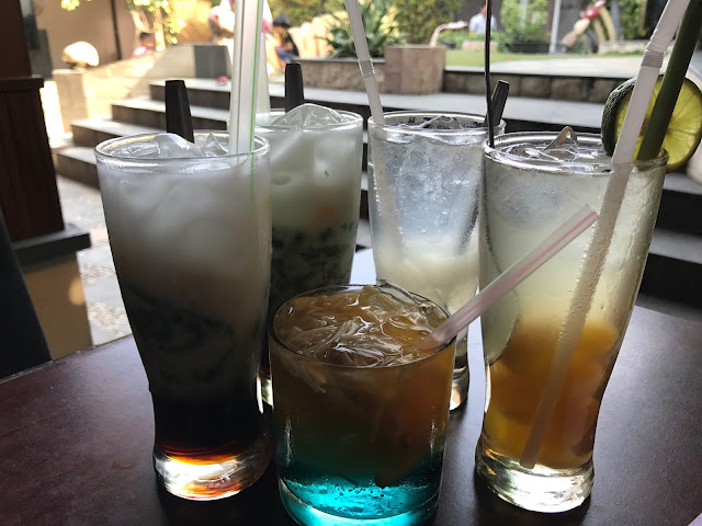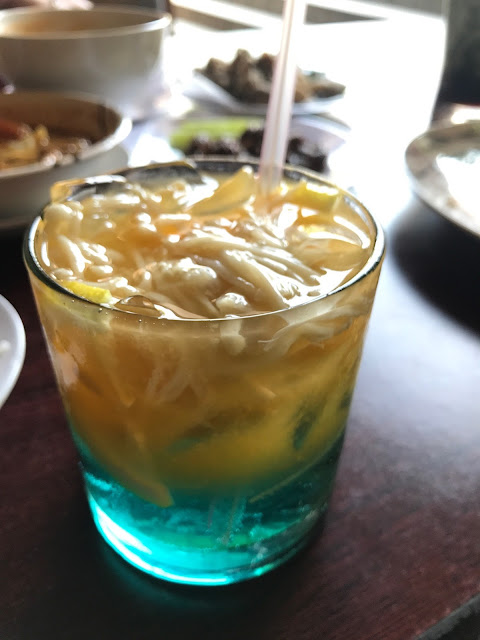 抵达日惹的第一个下午,大家肚子开始敲锣打鼓。在网上找到了几家受好评的餐厅,当中我们选了Ayam Goreng Surhati。 必点的炸鸡外层酥脆但肉质很硬,难以咀嚼。炸鸡味道偏咸,务必要配饭吃,而且吃多了还会感觉很油腻。 由于天气炎热,决定来杯解渴的椰水。谁料到椰水端上桌时,是双色的。大家别高兴得很,青色那一层是班兰叶香精+糖水。我的妈呀简直是甜到进肺里了! 没有尝试过的朋友总得拜访一次,毕竟口味是因人而异没有办法保证每个人都能接受;不过这不表示你就一口认定不适合您。