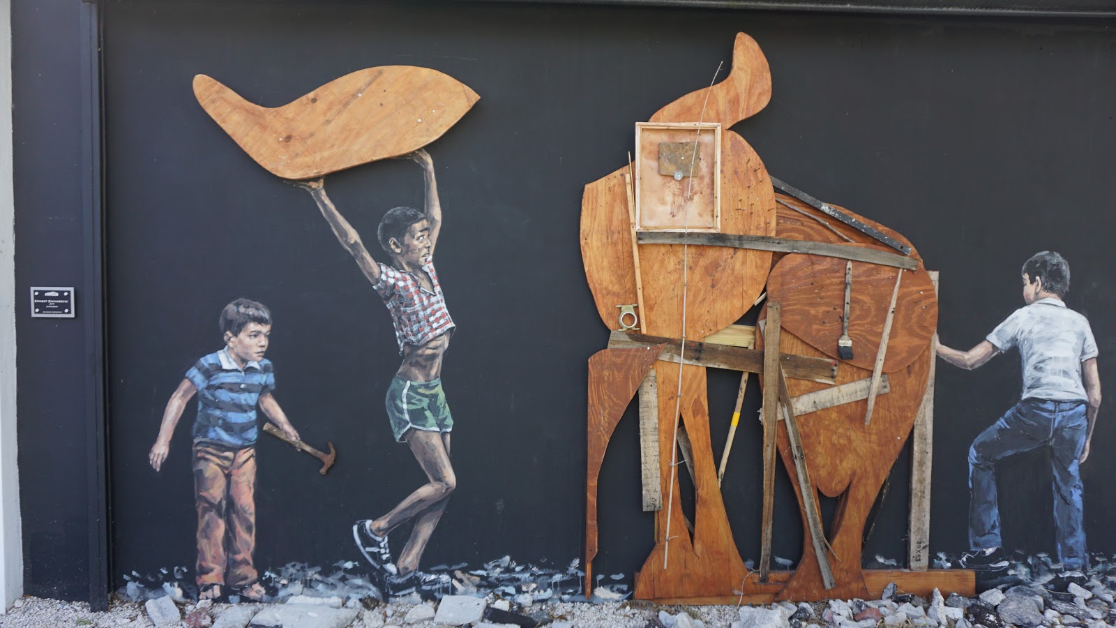 Wynwood Wall以户外街头画廊的概念呈现了来自世界各地艺术家的艺术创作。其中包括来自巴西,德国,美国,希腊和西班牙。 艺术家双巧手将每幅画画出了灵魂,各具有色彩和情彩。 乔治市Georgetown大名鼎鼎的街头壁画多数是Ernest Zacharevic这位艺术家的创作,没想到大师级Ernest Zacharevic的创作在Wynwood Art能再次见到。画工仍然如此生动精细,栩栩如生!