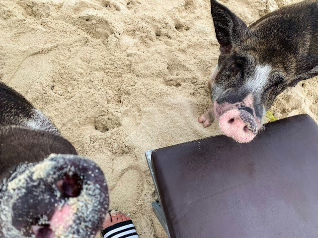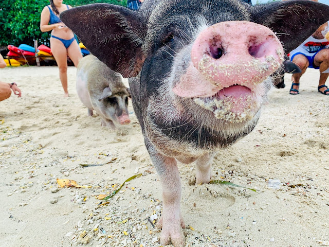 这群生活在马德森岛上的黑毛猪,在沙滩上自由地奔跑,过着吃饱睡睡饱吃的生活,一点都不怕人。它们并不是你在电视上所看过的迷你粉红色小猪,而是重量级过百斤的猪哥!