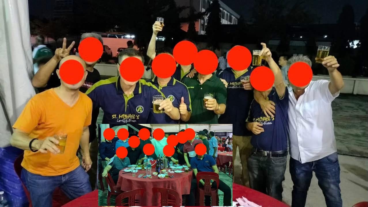 St michael 老同学聚会,喝几杯没什么大不了, 但满口谎言的月亮党,看见人家喝两杯就beh tahan, 一副很有道德的淋样出来教训人家,说不可以在学校范围喝酒,然后就有了这个禁酒课题!